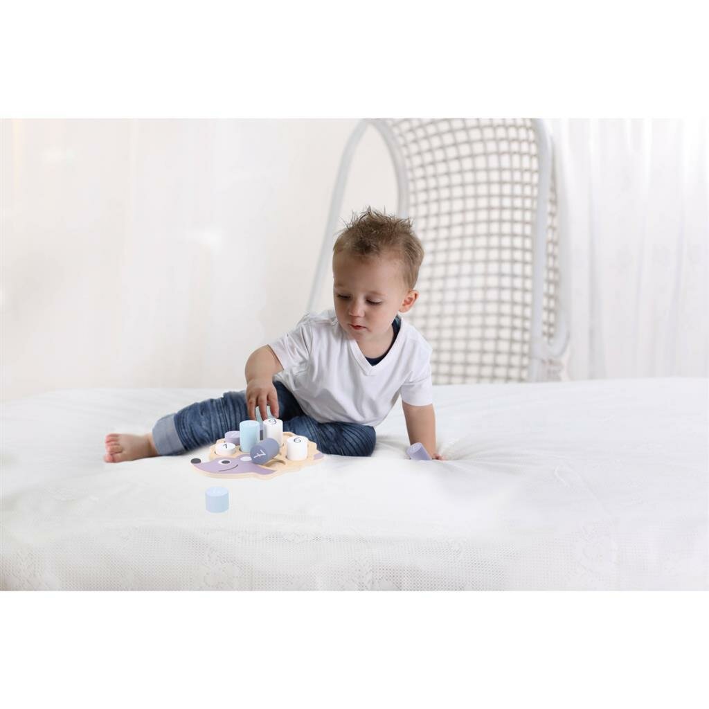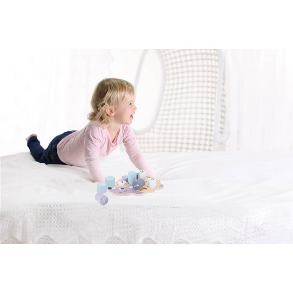 Jipy houten legpuzzel egeltje met uitsparingen voor de 10 puzzelstukken. Deze zijn cilindervormig en hebben verschillende formaten en cijfers. Zo leren kinderen hun eerste cijfers spelenderwijs. Kleur: paars-blauwtinten. Geschikt voor kinderen vanaf2 jaar.