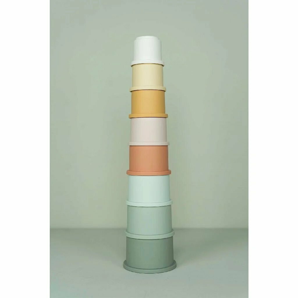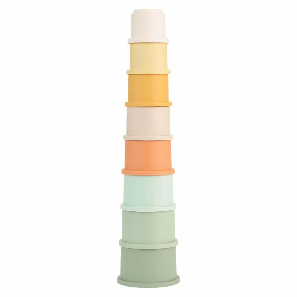 Little Dutch stapelbekers 1,2,3 hoe hoog wordt de toren?! Deze set met bekers daagt je peuter uit om ze één voor één op elkaar te stapelen. Hoe groot zal de vreugde zijn als de toren helemaal staat? En hoe leuk is het om de toren weer om te gooien! Uren speelplezier gegarandeerd. Met de vier vrolijke tinten zullen de bekers je kleintje zeker vermaken. De 8 stapelbekers hebben een nummer aan de bovenkant en passen gemakkelijk in elkaar om te voorkomen dat de toren te snel valt. Je kleintje leert over cijfers en ontwikkelt fijne motoriek. Stapel en maak de toren in de box, op de vloer of in de badkuip of zandbak. Dankzij het veelzijdige materiaal kan het overal worden gebruikt. Plaats de kleine bekers in elkaar om ze eenvoudig op te bergen. De toren bestaat uit 8 stapelbekers, variërend in diameter tussen 6 en 9,5 cm en de toren is in totaal 43 cm hoog als je alle bekers op elkaar zet. Geschikt voor kinderen vanaf 12 maanden.