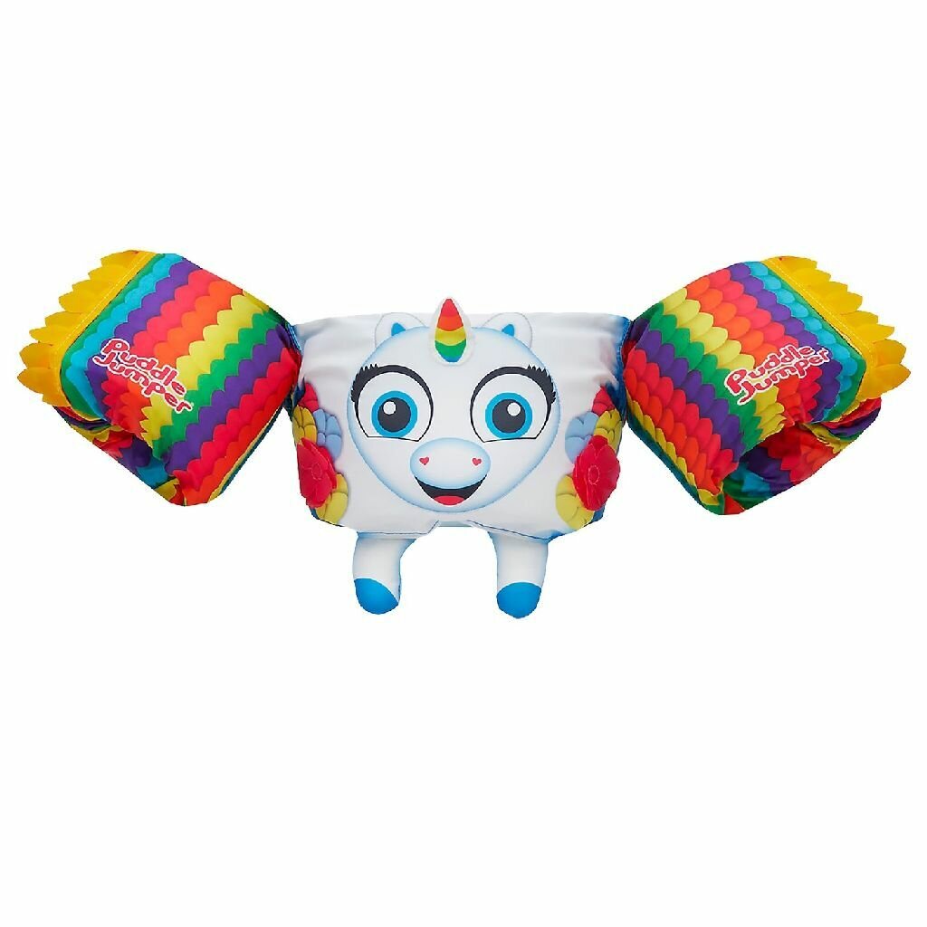 Deze Sevylor Puddle Jumper in leuk 3D eenhoorn design brengt het beste van een zwemvest en zwembandjes bij elkaar. Vervaardigd uit duurzaam materiaal. De buitenzijde is van stevig nylon en de binnenkant voorzien van schuim. Dit zwem accessoire verhoogt de veiligheid van uw kind in het water. De verstelbare klikband zorgt voor extra veiligheid. Deze Puddle Jumper is niet zelfstandig uit te trekken. Geschikt voor kinderen tussen de 15 en 30 kg.