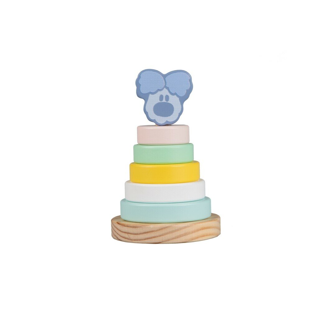 Woezel en Pip houten stapeltoren Woezel Stapel de 5 houten ringen van deze Woezel en Pip Woezel ringpiramide in de juiste volgorde. De piramide bestaat uit een blank houten basis, 5 ringen en een blokje in de vorm van Woezel. Die mag bovenop de piramide worden gezet! Dit speelgoed stimuleert de zintuigen, de hand-oogcoördinatie en helpt bij de ontwikkeling van de fijne motoriek. Geschikt voor kinderen vanaf 10 maanden.